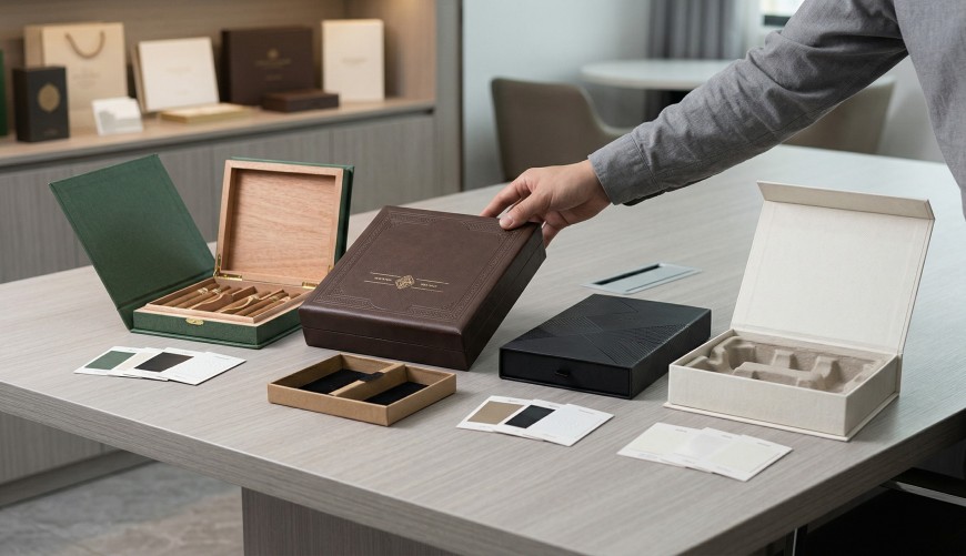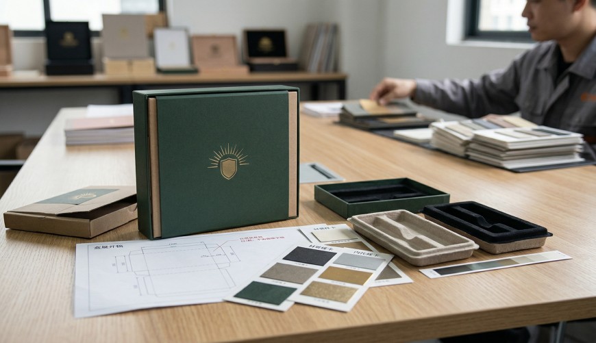 We help narrow down material direction, surface treatment, and visual details so the box feels more aligned with the brand.