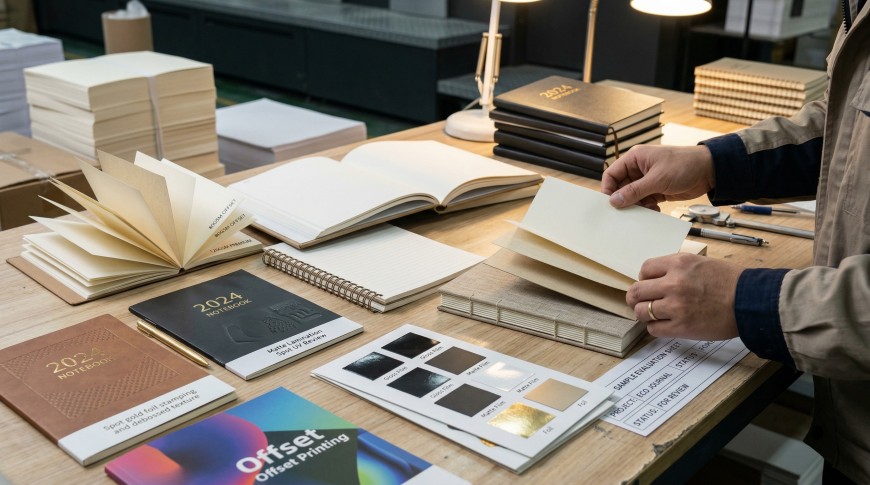 Notebook printing often looks straightforward on the surface, but many projects become difficult because multiple decisions—paper, binding, cover treatment, page count, writing experience, packaging, and schedule—have to work together.