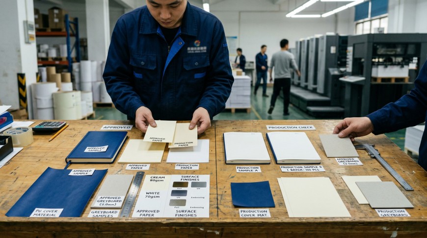 Paper, cover materials, board thickness, and finishing expectations should be aligned before bulk production to reduce mismatch between approved sample and final output.
